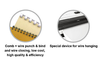 - Punching capacity: 32 / 34 holes wire – 15 sheets & 19 / 21 holes comb – 20 sheets